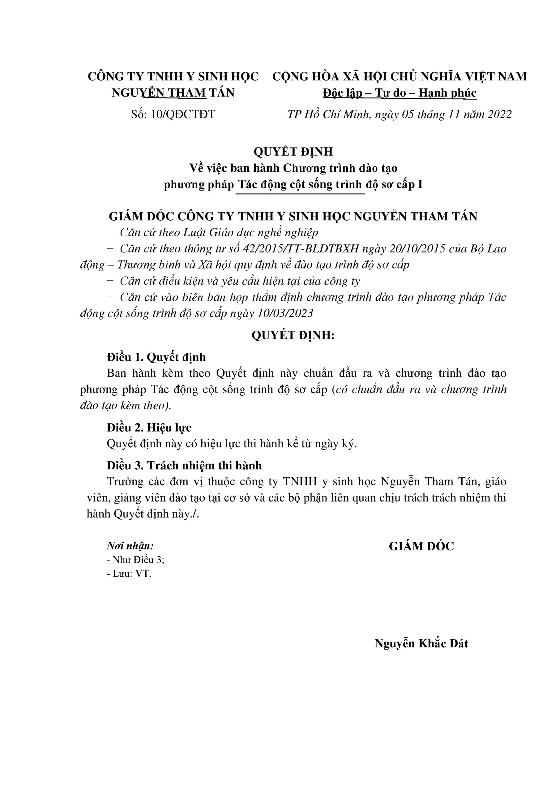 1. Mục đích: Đào tạo kiến thức cơ bản và nâng cao về PP Tác động cột sống nhằm trang bị, truyền lại kiến thức, kỹ năng nghề cho học viên về chăm sóc sức khỏe cộng đồng (chữa bệnh không dùng thuốc bằng phương pháp tác động cột sống).