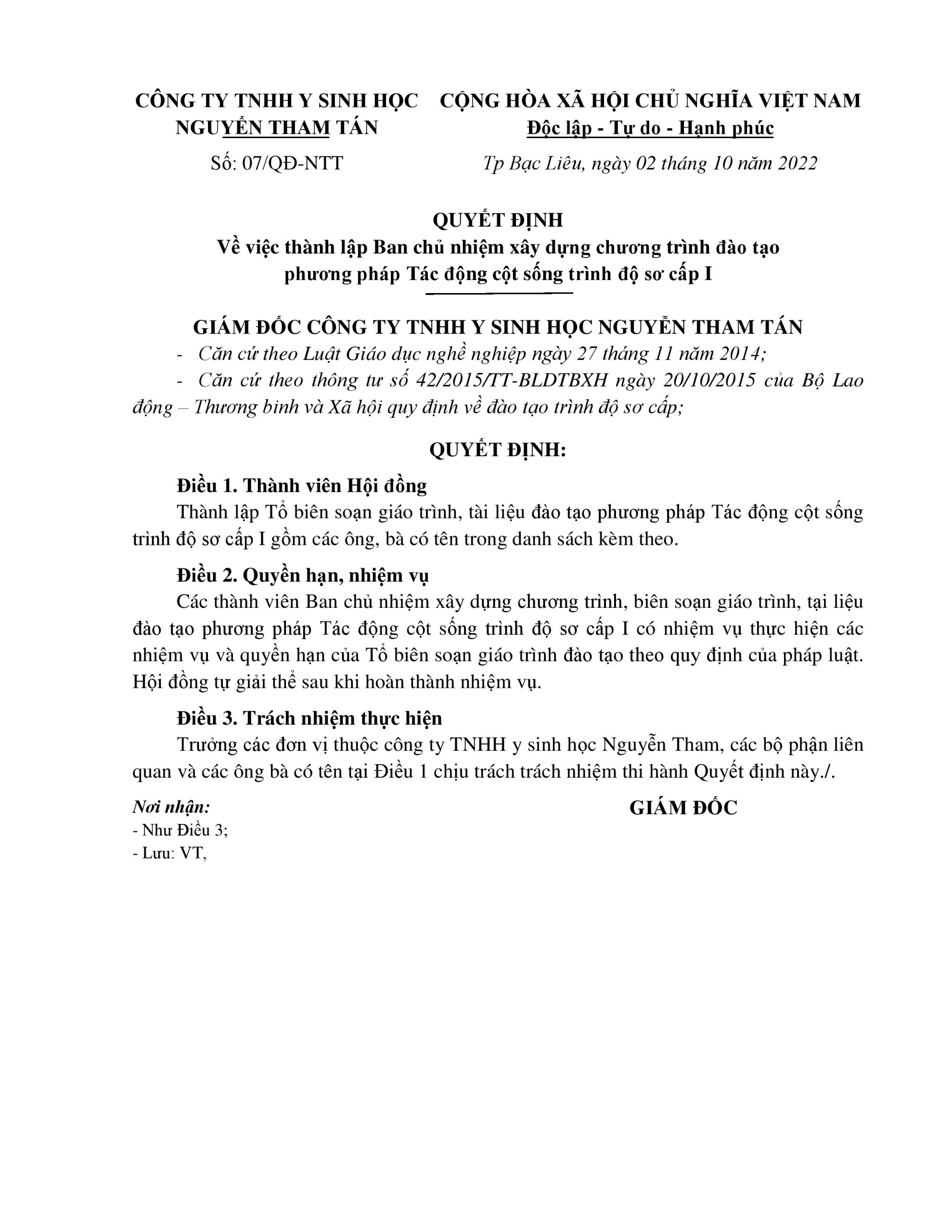 – Phòng tuyển sinh Trung tâm Tác động cột sống Nguyễn Tham Tán